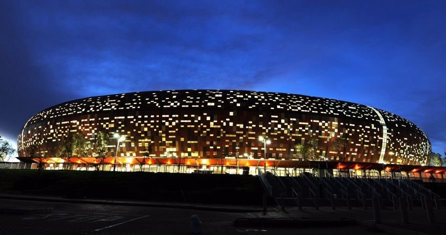 «Соккер Сити Стадиум» — сердце футбола ЮАР. Архитекторов вдохновила африканская керамика, а именно калабас — глиняный горшочек для питья мате. Поэтому у арены такая форма, а фасад украшен рыжей мозаикой.